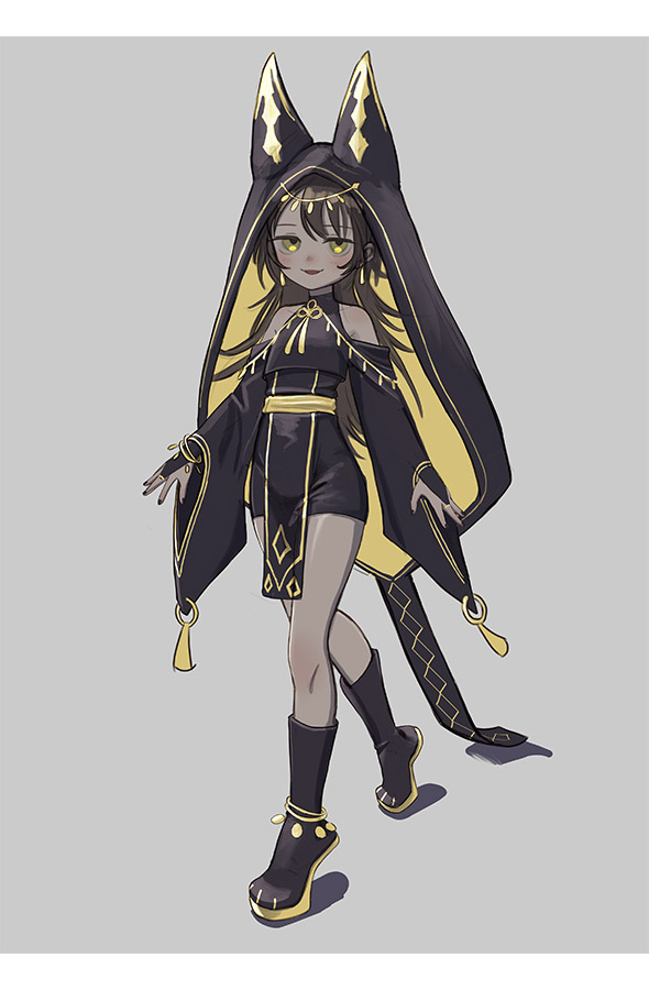 温厚な黒猫の擬人化です。様々な文化が混ざりあった、