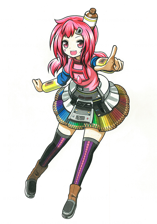 妹のAkiちゃんはピンク色の髪。頭にボトル形式のインクを乗せ