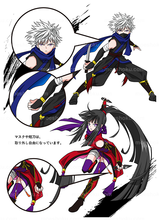 目指しました。男忍者のマスクと短刀、女忍者のクナイは取り外しが可能です。